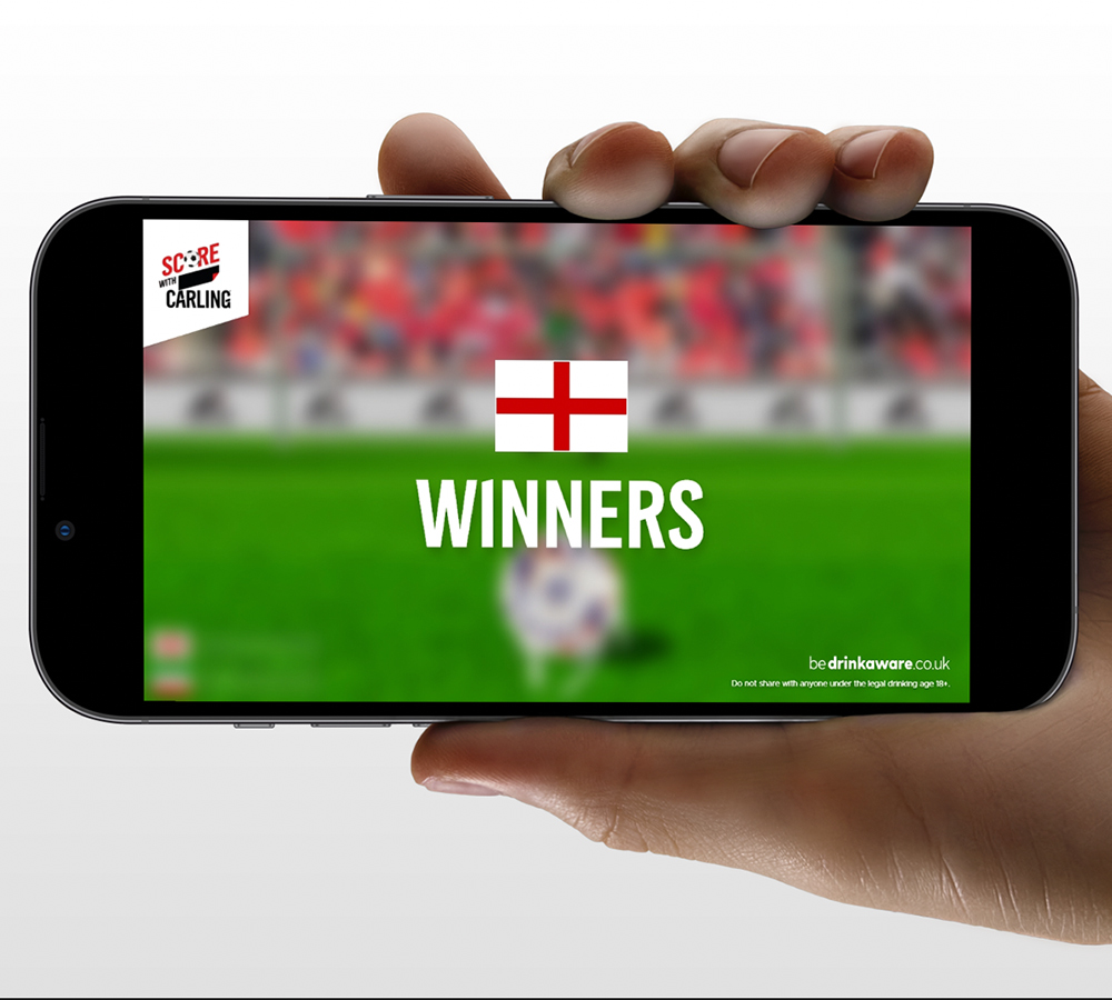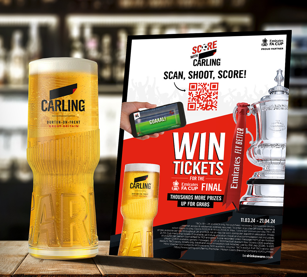 Bright and bold POS – We designed call-to action POS, table talkers, strut cards and posters, that were sent to 8,000 outlets across the UK and ROI. All the consumer had to do was scan the QR code to play. The bold messaging and design was inspired by Carling’s popular on-pack promotion which was running simultaneously.
