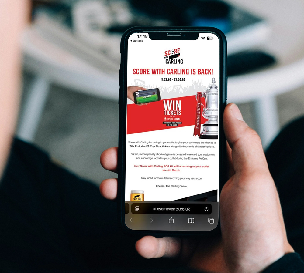 XSEM have masterfully brought Score with Carling to life for the third time, leading with dedication and creativity from the initial concept to the final execution. The consistency of their branding work and alignment with our wider campaigns has allowed for an unforgettable activation, which every year strengthens the Score with Carling project brand further. Without a doubt, XSEM set a standard for gamification marketing and have helped us to reinforce our brand association with football, as well as our partnership with the Emirates FA Cup.
